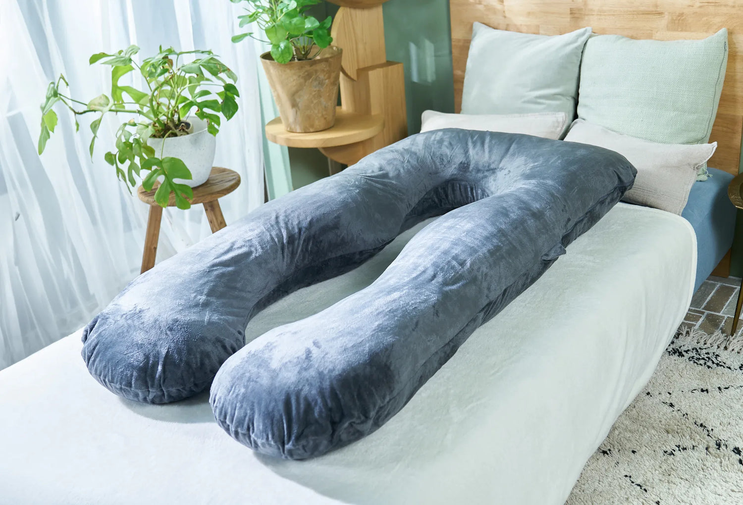 U字型抱き枕の「接触冷感タイプ」です。夏の暑い時期でも快適に使える「接触冷感カバー」を採用したHUGMINです。