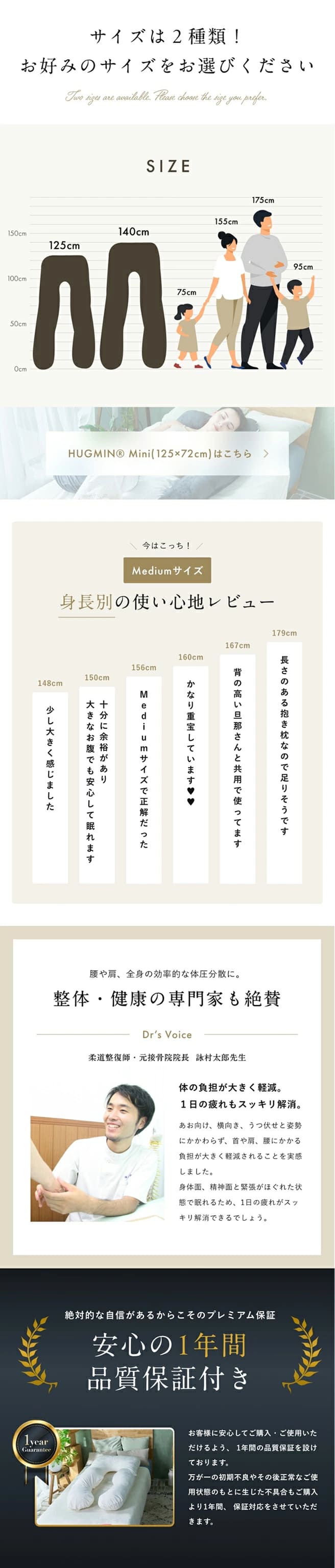 抱き枕 Medium 約140×80cm